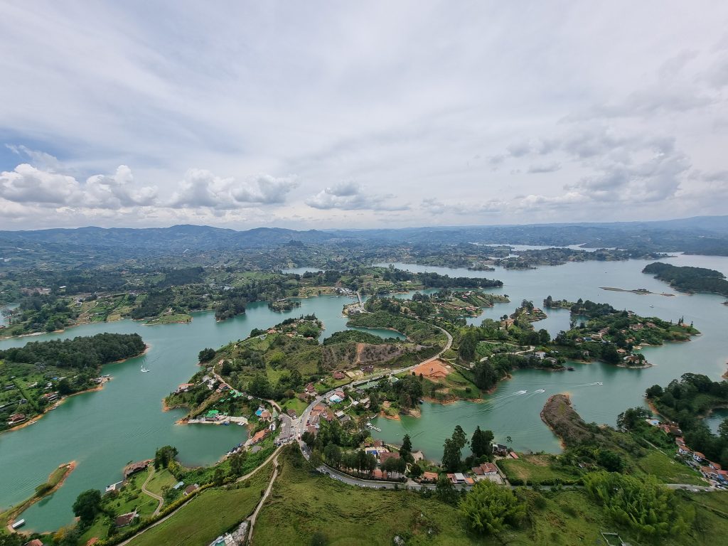 Día 6: Naturaleza y Colores en Guatapé. La aventura te lleva a las afueras de Medellín, hacia la imponente Piedra del Peñol, una formación rocosa de 220 metros de altura que ofrece vistas espectaculares de la represa circundante. Si te sientes con energía, puedes ascender sus más de 702 escalones para una panorámica aún más impresionante (costo adicional). Luego, disfrutarás de un paseo en bote por la represa, admirando el paisaje y conociendo su historia. El almuerzo será en un restaurante local, donde degustarás la gastronomía regional, antes de visitar el pintoresco pueblo de Guatapé, famoso por sus casas decoradas con coloridos zócalos y su vibrante Plazoleta de los Zócalos. Un verdadero festín visual.