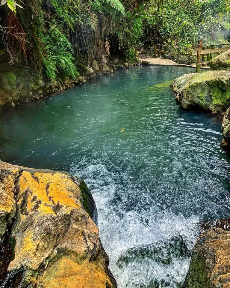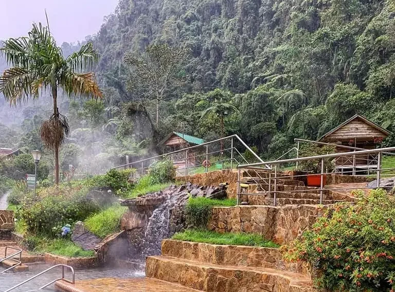 Termales San Vicente are natural hot springs located in a beautiful canyon in the Coffee Triangle, known for their healing and relaxing properties.