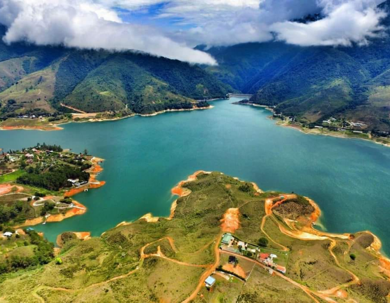 El Lago Calima es uno de los embalses más grandes de Colombia y es famoso por sus fuertes vientos, ideales para deportes como el kitesurf.