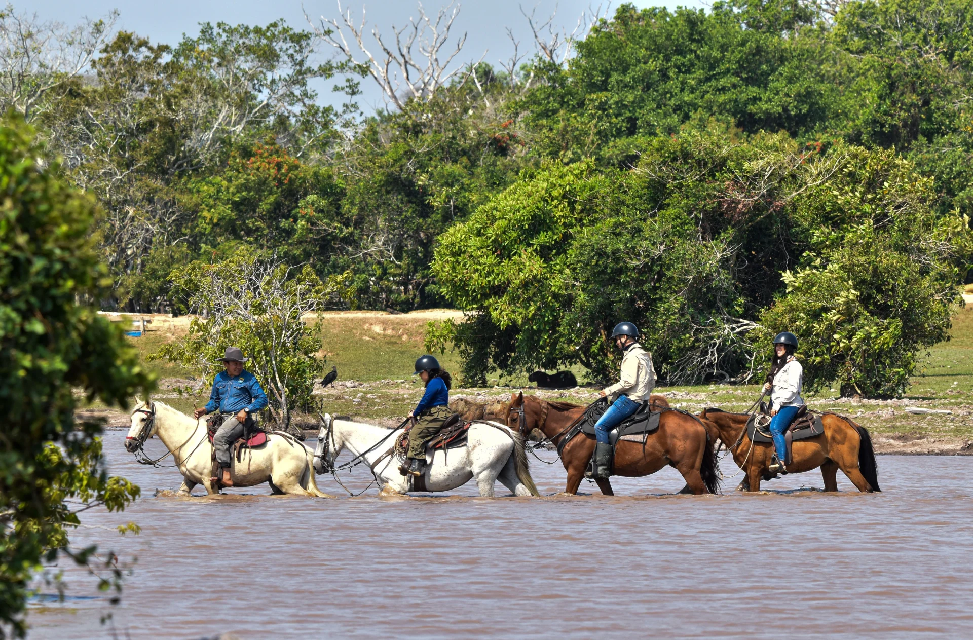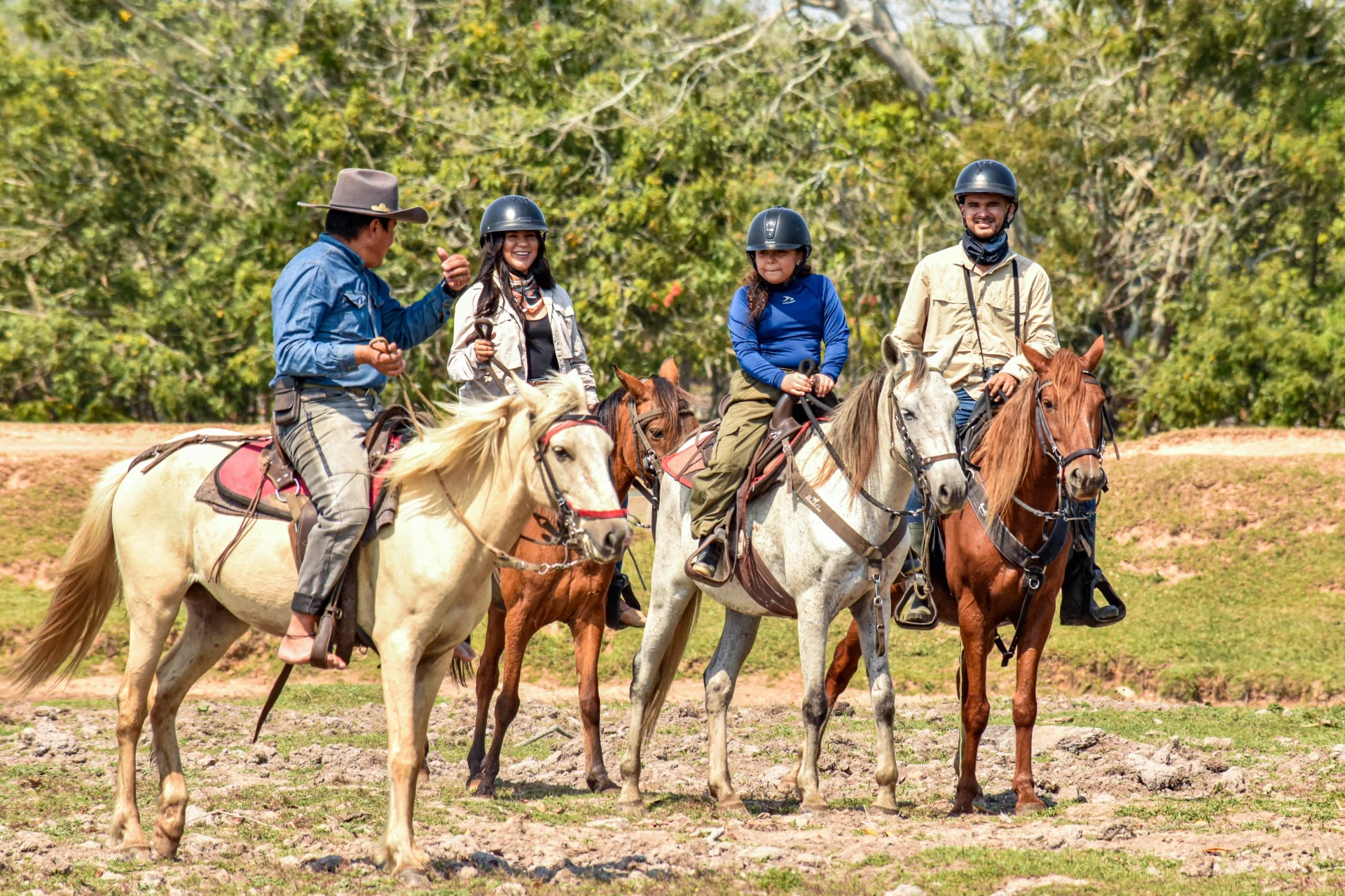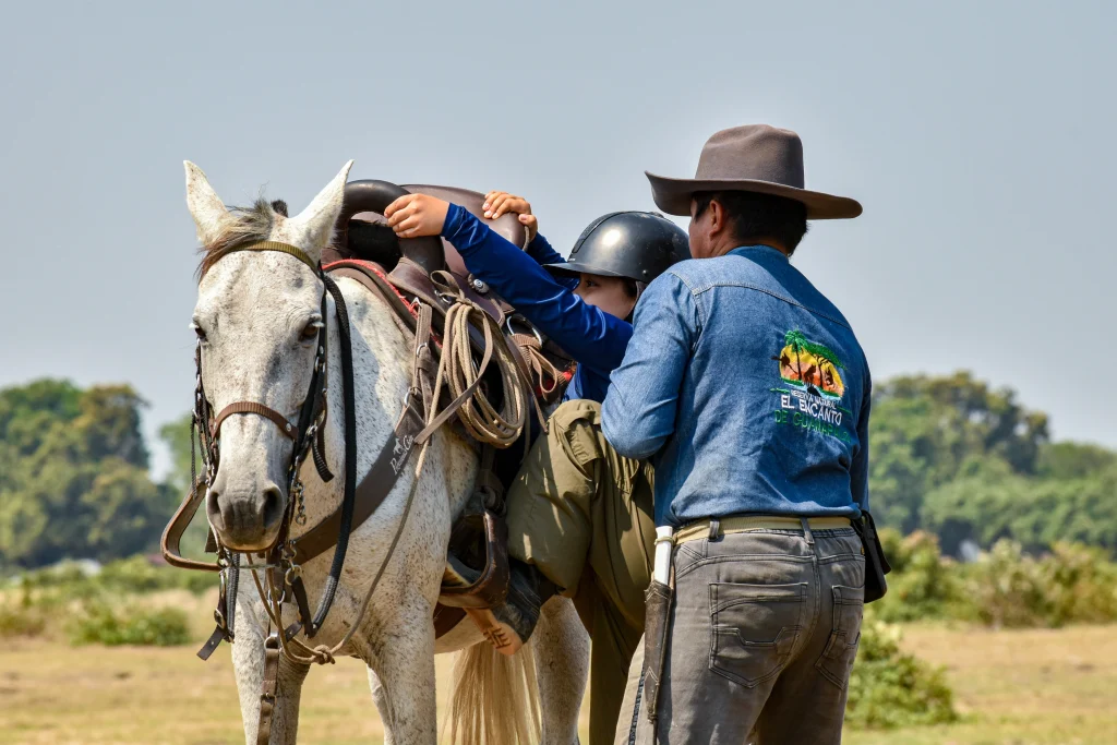 Te recomendamos llevar ropa cómoda y ligera, sombrero, protector solar, repelente de insectos, y calzado adecuado para montar.