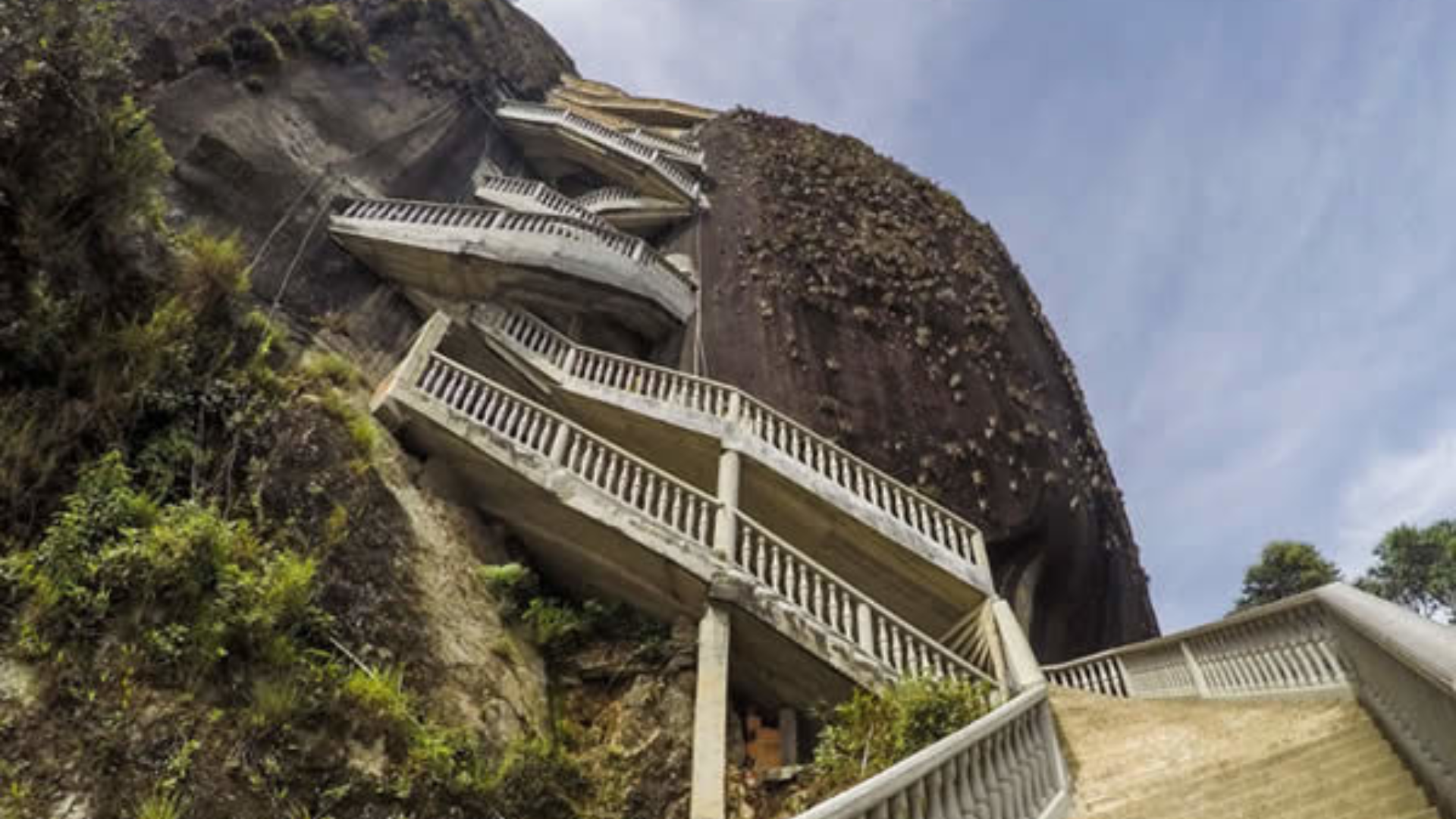 La Piedra del Peñol es un monolito de 220 metros de altura con una escalera incrustada en la roca.
