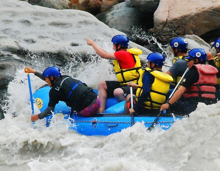 El rafting es una actividad acuática que consiste en descender por ríos con rápidos en una balsa o bote inflable, enfrentando la corriente del agua.